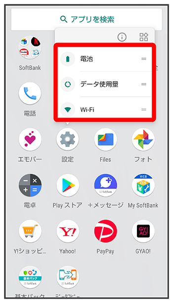 アプリをロングタッチすると、アプリにより機能へのショートカットが表示される場合があります。機能ショートカットをタップすると、その機能を直接起動できます。