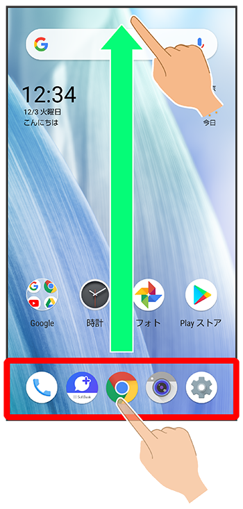 ホーム画面でお気に入りトレイを画面上部までドラッグ