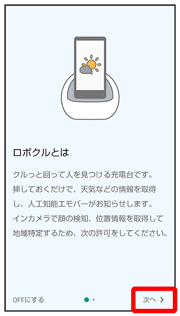 ロボクルを利用するには、あらかじめ、ロボクルに機能の利用を許可させる必要があります。