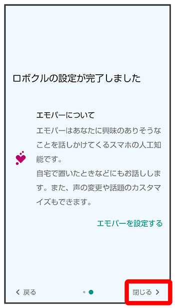 - エモパーの設定を行う場合は、をタップし、画面に従って操作してください。