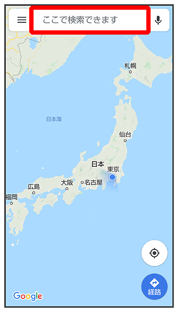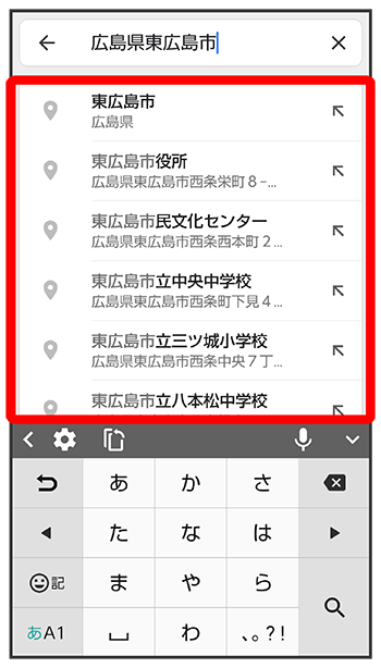 住所や都市、施設名などを入力選択候補から住所や都市、施設名などをタップ
