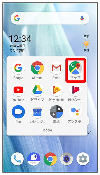 マップ画面で交通状況や航空写真、ヘルプなどを表示する