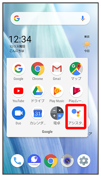 Google アシスタント画面を上にフリック