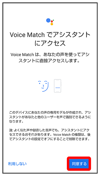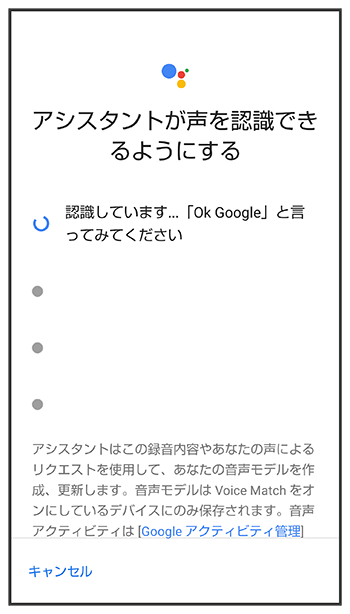 Google アシスタント機能がONに設定されます。