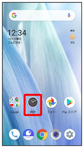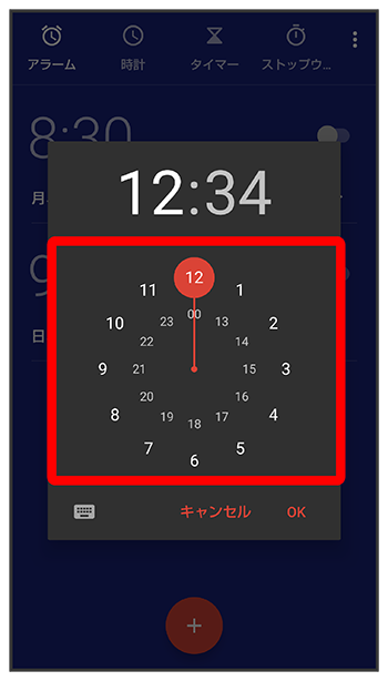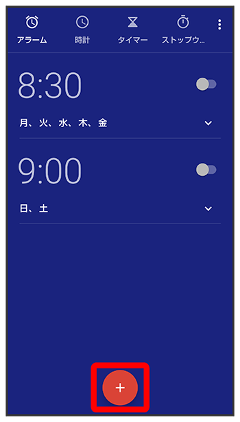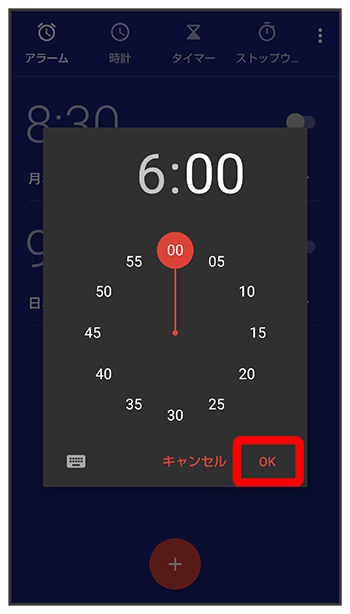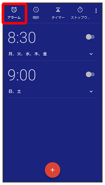 アラーム設定時刻になると、アラーム通知の画面が表示され、アラームやバイブレータでお知らせします。