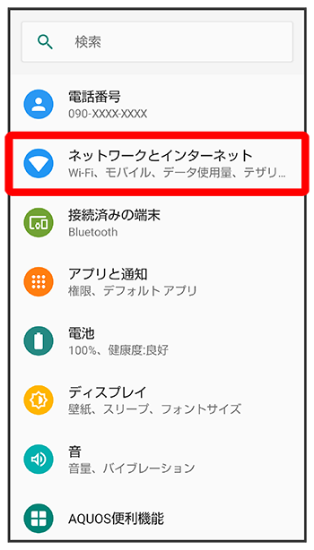 Wi-Fi画面でプロバイダーを選択MACアドレスを確認する