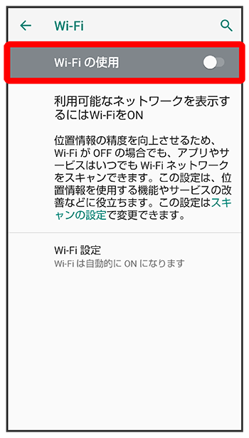 ホームネットワークなど高品質の保存済みネットワークが利用できるとき、自動的にWi-Fiを有効にするかどうかを設定する