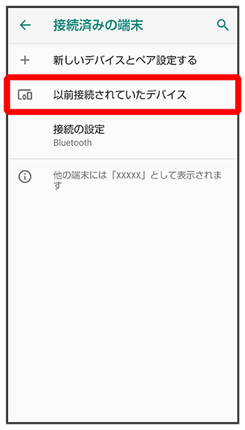 以前接続されていたデバイス画面で、ペア設定している機器のペア設定を解除する