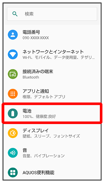 電池画面が表示されます。