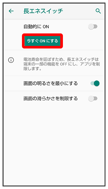 - 長エネスイッチを無効にするときは、をタップします。