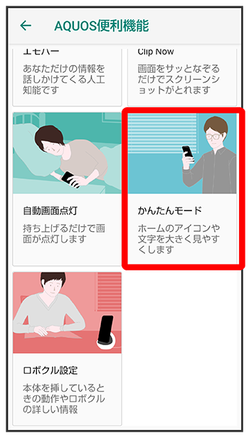 かんたんモード画面でホーム画面や文字の大きさなどを個別に設定する
