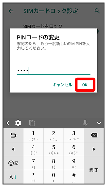 PINコードの変更は、SIMカードロックを設定している場合のみ行えます。詳しくは、「PINコードを有効にする」を参照してください。