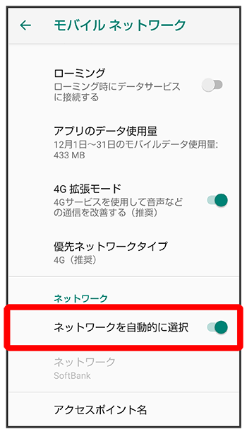 - 自動的に適切な通信事業者に接続するように設定するときは、再度、をタップします(