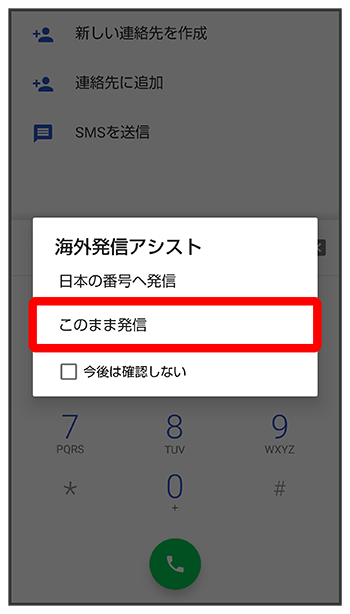 ダイヤルキーをタップして相手の電話番号を入力- 電話番号の先頭には「+」を付けないでください。