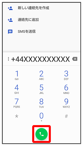国番号のあとに相手の電話番号(先頭の「0」を除く)を入力