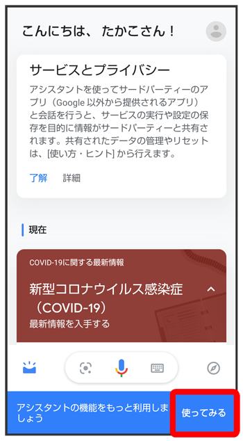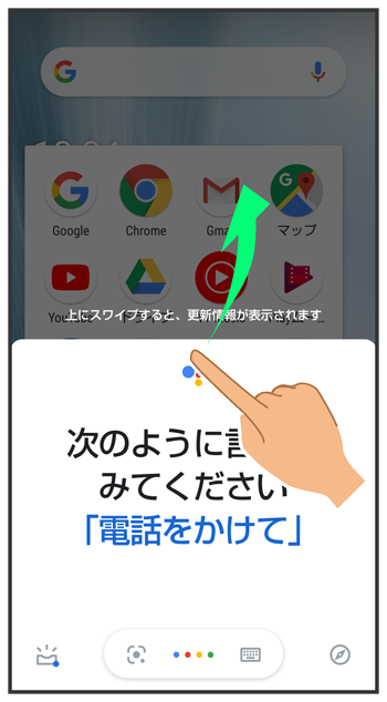 Google アシスタント画面を上にフリック