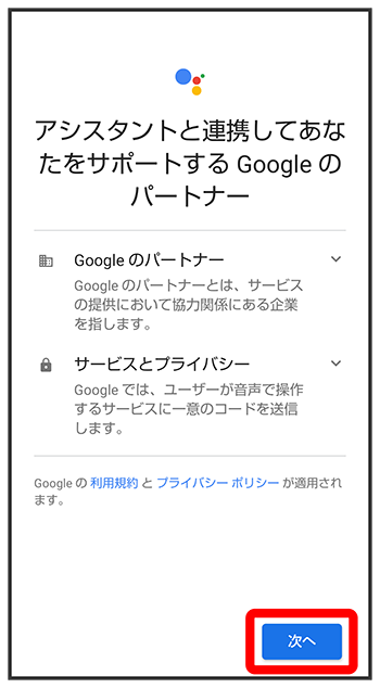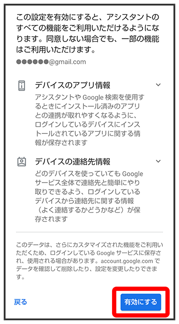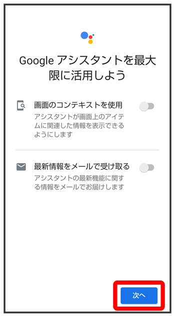 Google アシスタント機能がONに設定されます。