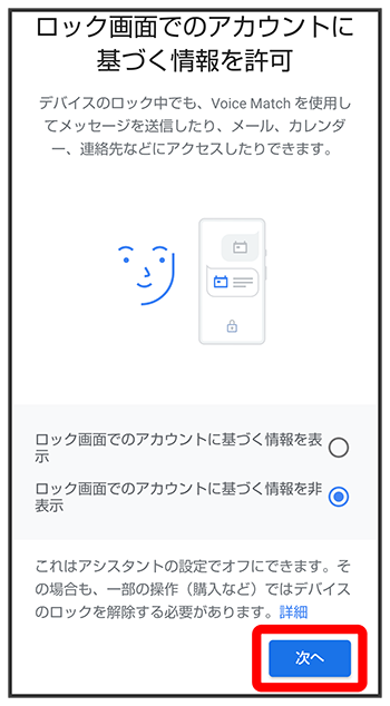 ロック画面でのアカウントに基づく情報の許可を設定