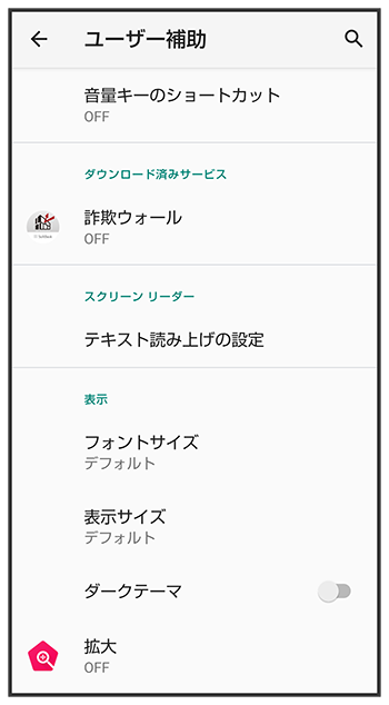 | 操作までの時間(ユーザー補助タイムアウト) | 追加され、操作が必要にもかかわらず短い時間しか表示されないメッセージの表示時間を指定できます。 |