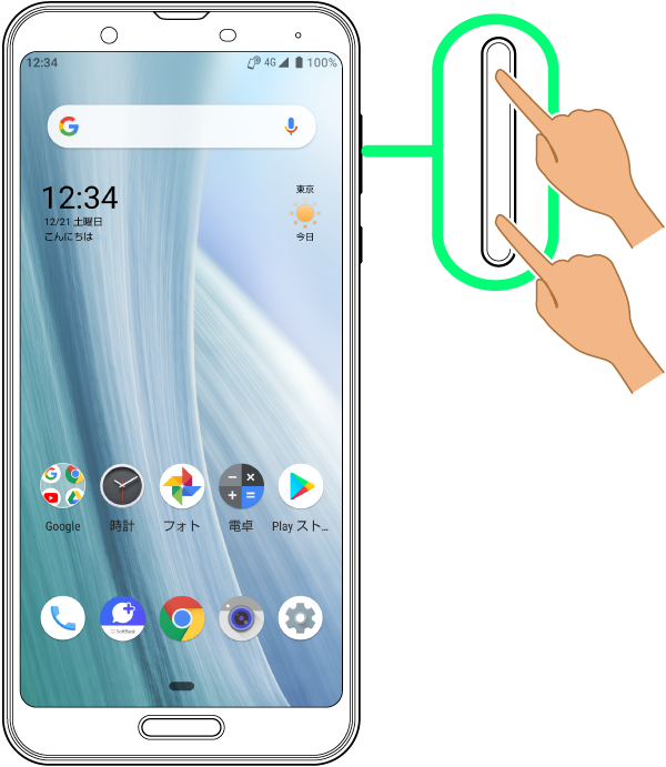 音量Upキー/音量Downキーを押す