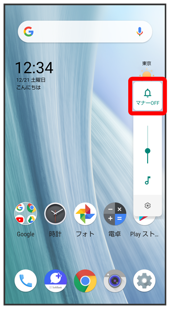(マナーOFF)に変わり、マナーモードが解除されます。