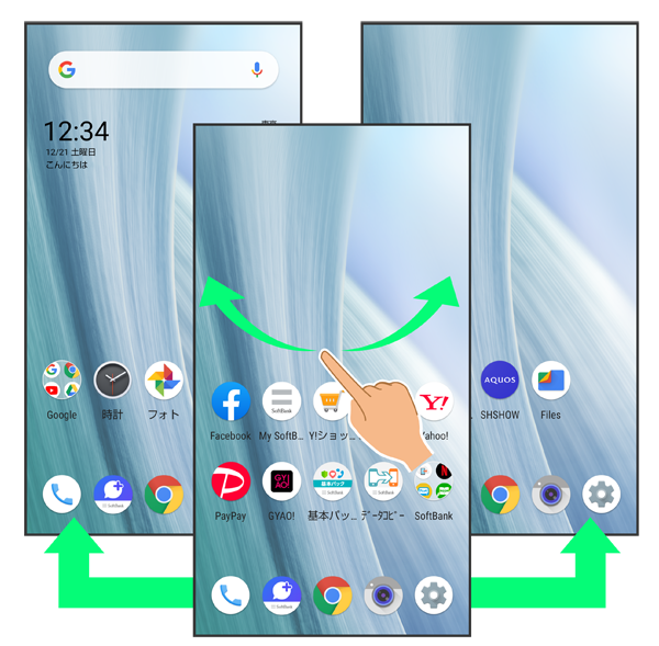 各シートを左右にフリックすると、ホーム画面シートを切り替えることができます。