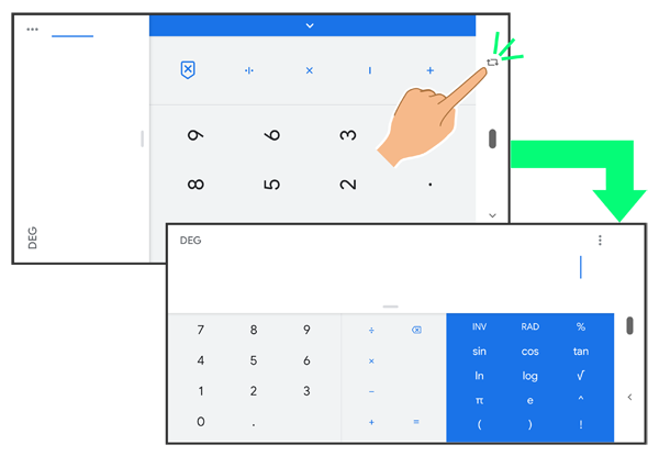 本機を横向きに回転させると、ナビゲーションバーに