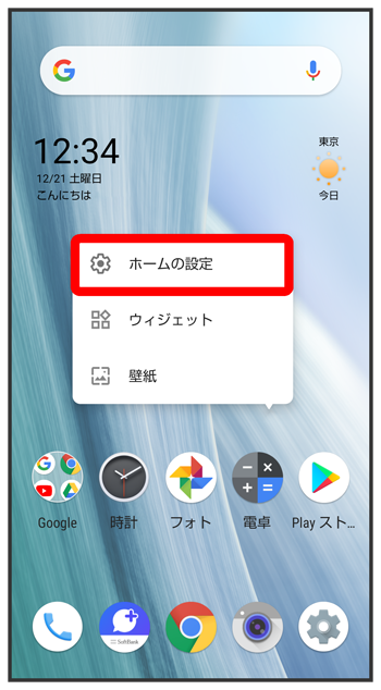 | Google アプリの表示 | ホーム画面の左端に、ニュースや天気などの情報を表示するかどうかを設定します。 |