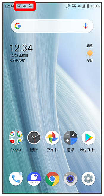 ステータスバーの左側に表示されるアイコンには、次のようなものがあります。