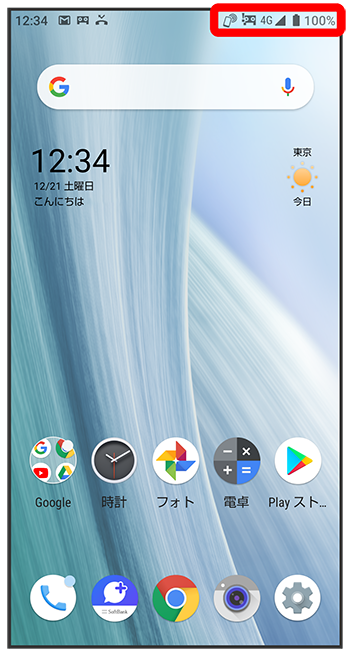 - 本機はFDD-LTE(SoftBank 4G LTE)およびAXGP(SoftBank 4G)に対応しており、どちらに接続していてもこのアイコンが表示されます。また、SoftBank 4Gに優先的に接続します。