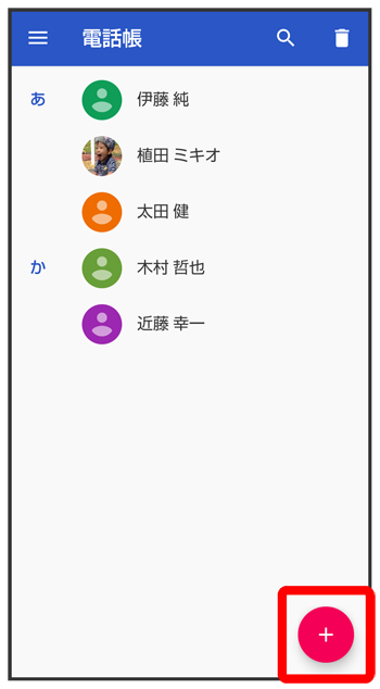 電話帳画面が表示されます。
