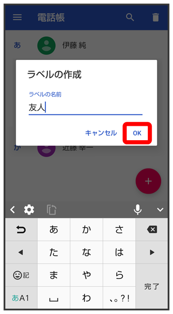 と操作して表示した連絡先画面では、ラベルの登録はできません。