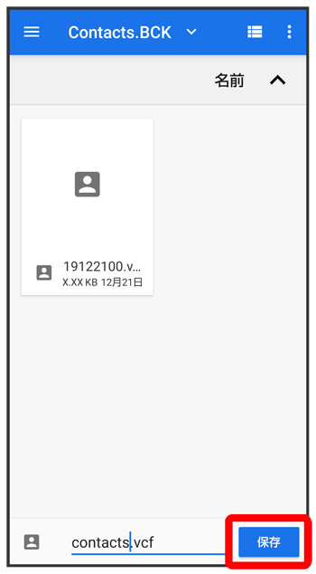 SDカードに電話帳データを保存する