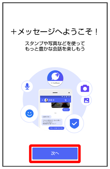 - をタップした場合は、SMS/S!メールのみの利用となり、+メッセージは利用できません。