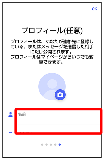 - 設定せずにをタップして、あとで設定することもできます。詳しくは「プロフィールを編集する」を参照してください。