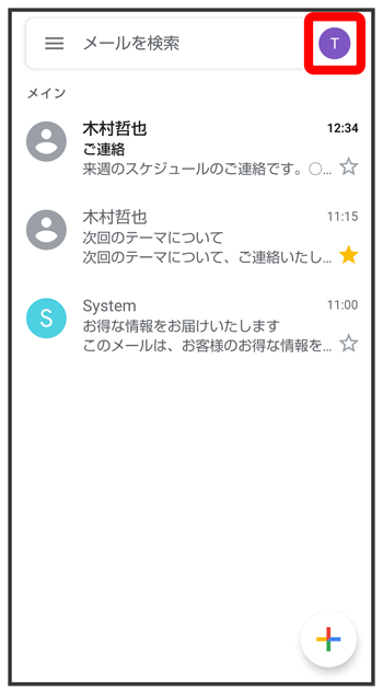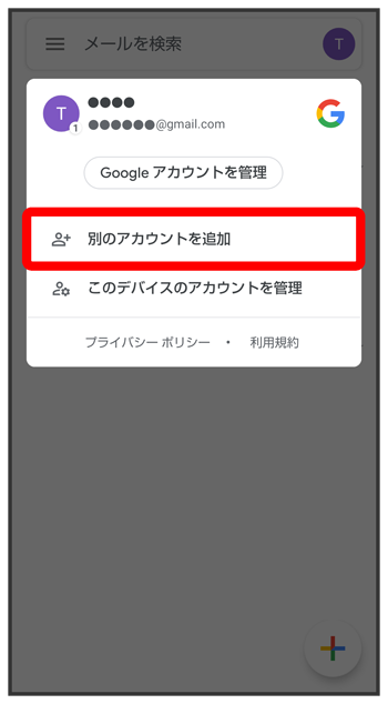 ここでは、Googleのメールアカウント追加を例に説明します。