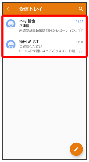 メール一覧画面が表示されます。