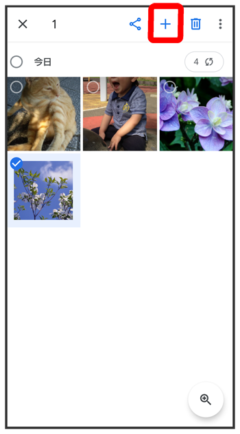 フォト画面で編集したいアルバムをタップアルバムに写真/動画を追加する