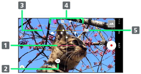 ホワイトバランスやISO感度などの設定ができます。 - オートアイコン