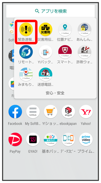 ホーム画面でお気に入りトレイを画面上部までドラッグ緊急速報メールを利用するかどうかを設定する