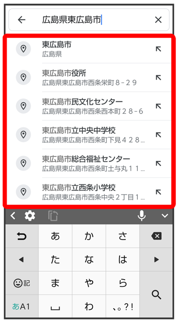 住所や都市、施設名などを入力選択候補から住所や都市、施設名などをタップ