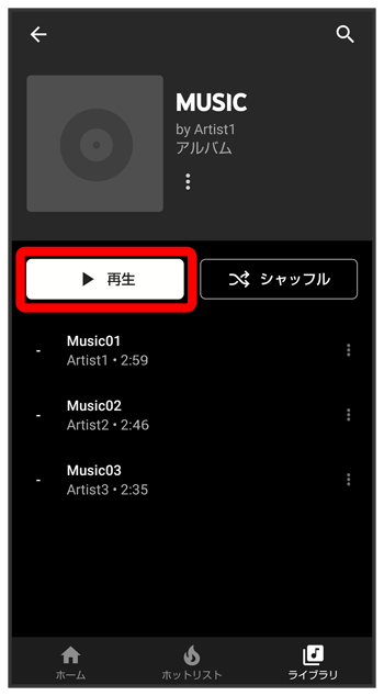 項目をタップ/再生する曲をタップ