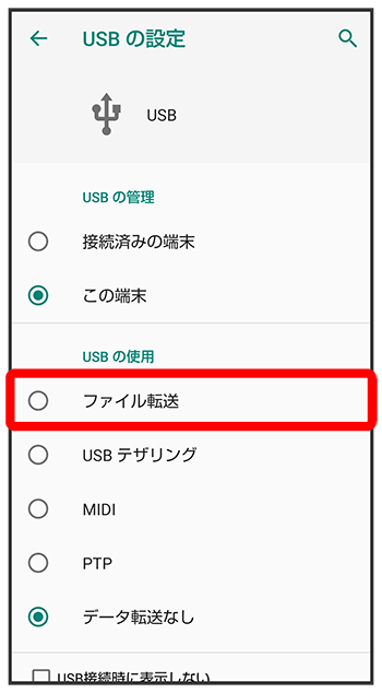 本機の内部ストレージ/SDカード内のデータをパソコンとやりとりする(MTPモード)