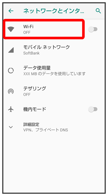 Wi-Fi画面でプロバイダーを選択MACアドレスを確認する