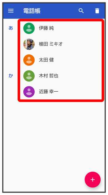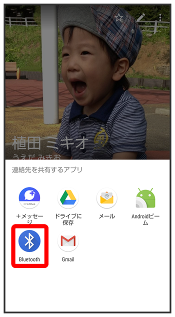 電話帳画面で連絡先をロングタッチ送信したい連絡先をタップ(