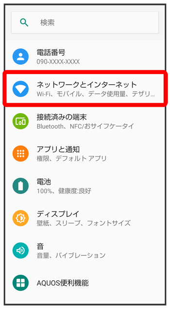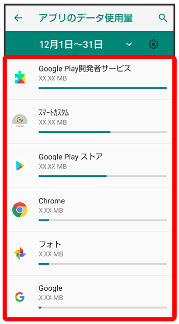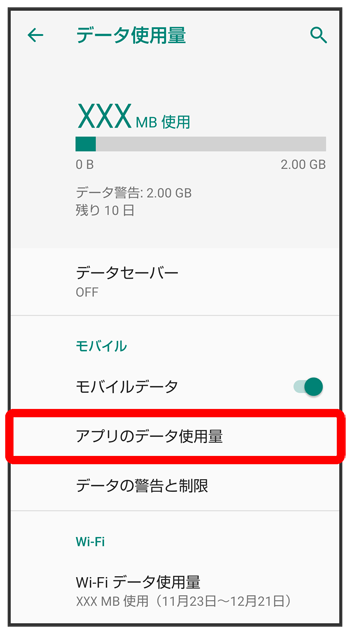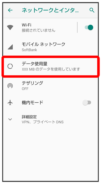 データ使用量画面が表示されます。