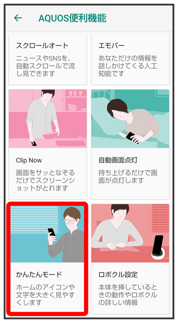 かんたんモード画面でホーム画面や文字の大きさなどを個別に設定する