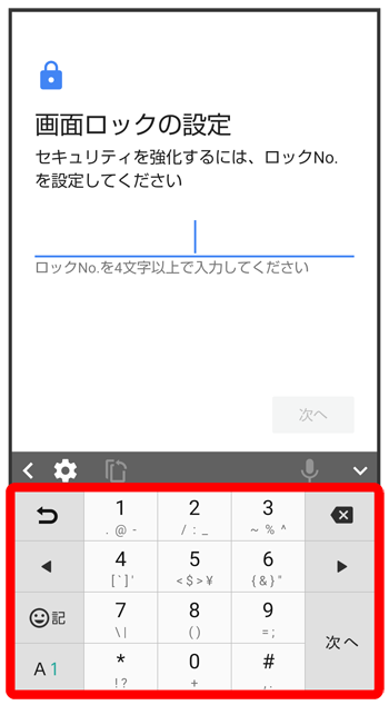 - をタップすると、入力したロックNo.(PIN)を消去できます。