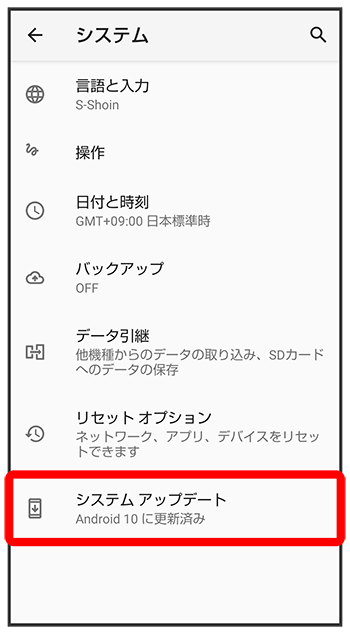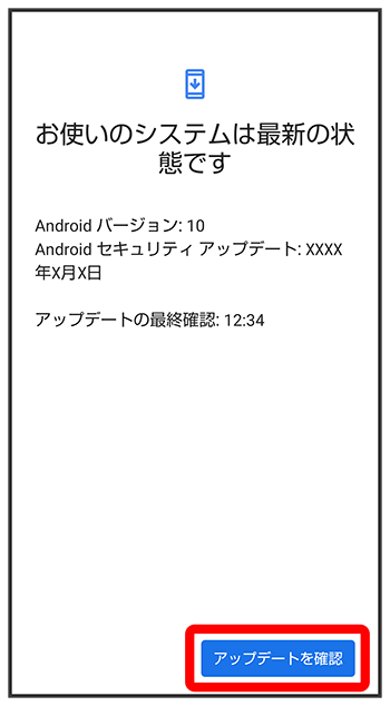 - システムアップデートが進むと最後にが表示されます。タップして、システムアップデートを完了させてください。