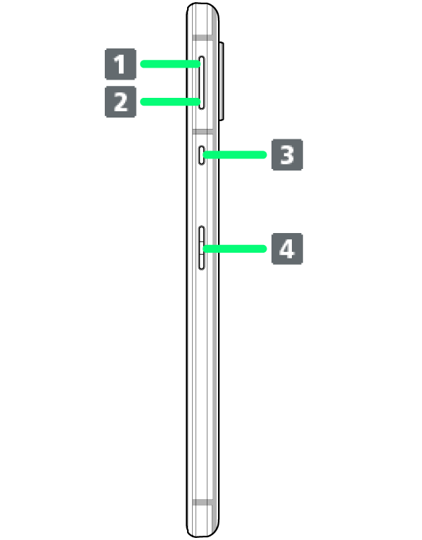 | 電源キー | 画面を消灯/点灯します。長押しすると、電源をON/OFFまたは再起動などができます。 |